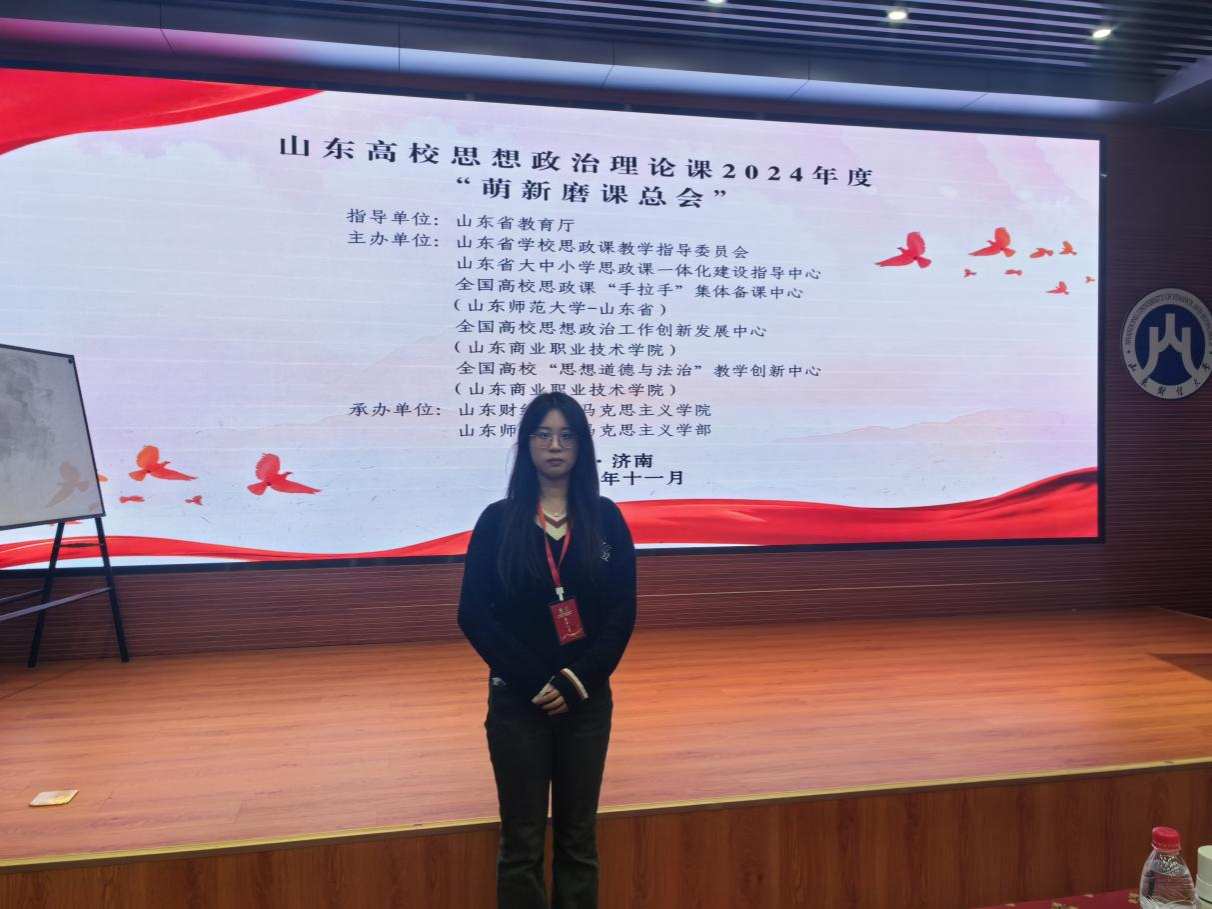 为提升全省高校青年思想政治理论课教师的政治素养和业务能力,增强思政课的思想性、理论性和亲和力、针对性,根据山东高校思想政治理论课教学指导委员会《山东高校思想政治理论课“萌新磨课会”活动实施方案(2024年)》要求,经初赛预选,2024年度“萌新磨课总会”决赛于11月29日在山东省济南市天舜大厦隆重举行。来自中国传媒大学、天津师范大学、安徽财经大学等省外高校的专家,省内高校伟德国际1949始于英国(思政部)负责人和青年思政课教师共计300余人参加活动。我院教师于明鑫、陈奕然参会。