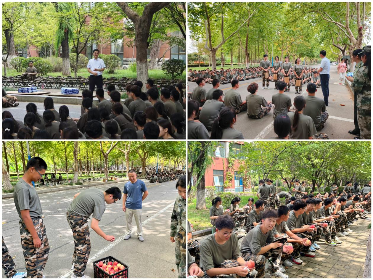 9月17日上午,校党委委员、副校长赵明在学生工作处处长来维龙、国防教育科科长胡敏的陪同下走进军训连队,为正在接受军事训练的学生及辛勤付出的带队老师们送去了学校的深切关怀与温暖祝福。