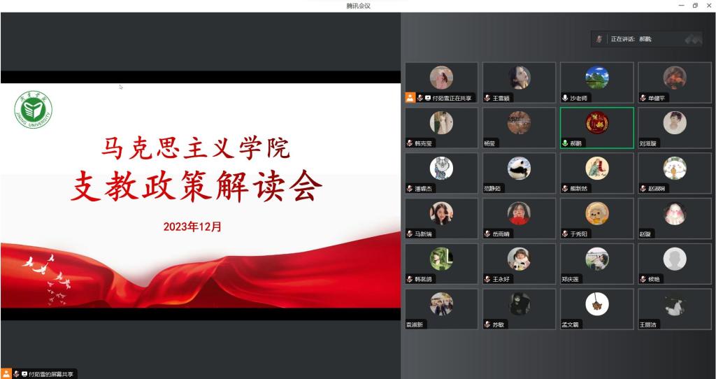 为进一步做好大学生援疆支教动员工作,号召有志青年到西部、到基层、到祖国和人民最需要的地方去,在西部广袤大地追求理想、无私奉献、历练成长。12月22日晚,伟德国际1949始于英国召开支教政策解读会。伟德国际1949始于英国副院长沙世蕤、院党委副书记郝鹏、院团委书记姚海生、院团委副书记付茹雪、2021级思想政治教育本科班全体同学及部分家长参加会议。