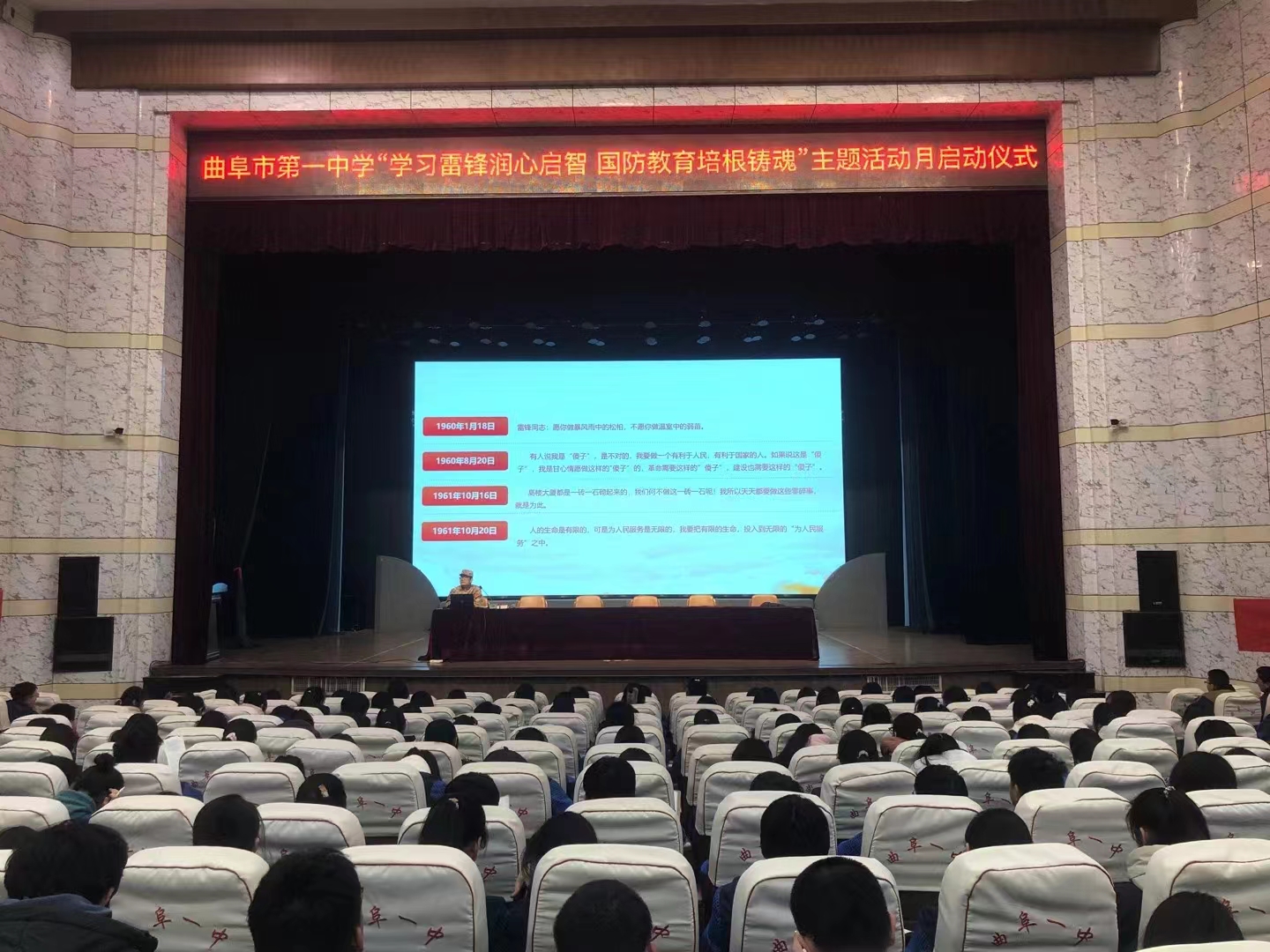 在曲阜市第一中学,李盎老师作了“传承雷锋精神,赓续红色血脉”主题报告,通过讲述雷锋同志的生平事迹和他无私奉献的精神,强调了雷锋精神在当代社会的重要意义,并对同学们提出了殷切期望,希望同学们能将雷锋精神内化于心、外化于行,用实际行动践行社会主义核心价值观,以饱满的热情不断向上生长,追“锋”前行,在追寻知识和梦想的道路上遇见更好的自己,在书写热辣滚烫的精彩篇章中遇见更好的成长。
