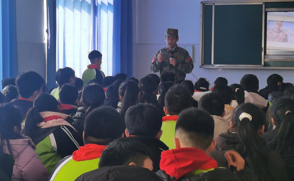 在嘉祥县纸坊镇四村小学,李盎老师以“英雄”为题,讲述了戍边英雄肖思远的故事,并由此围绕着“为什么要巩固国防”“我们能为国防做什么”等话题进行展开。通过鲜活的事例让同学们更加直观地了解了国防事业的重要性和意义,引导他们树立强烈的国家荣誉感和责任感。通过教育,同学们深刻感受到现在幸福生活的来之不易,纷纷表示要铭记历史、崇尚英雄、好好读书、发奋图强,长大后能为祖国的国防事业做出自己的贡献。