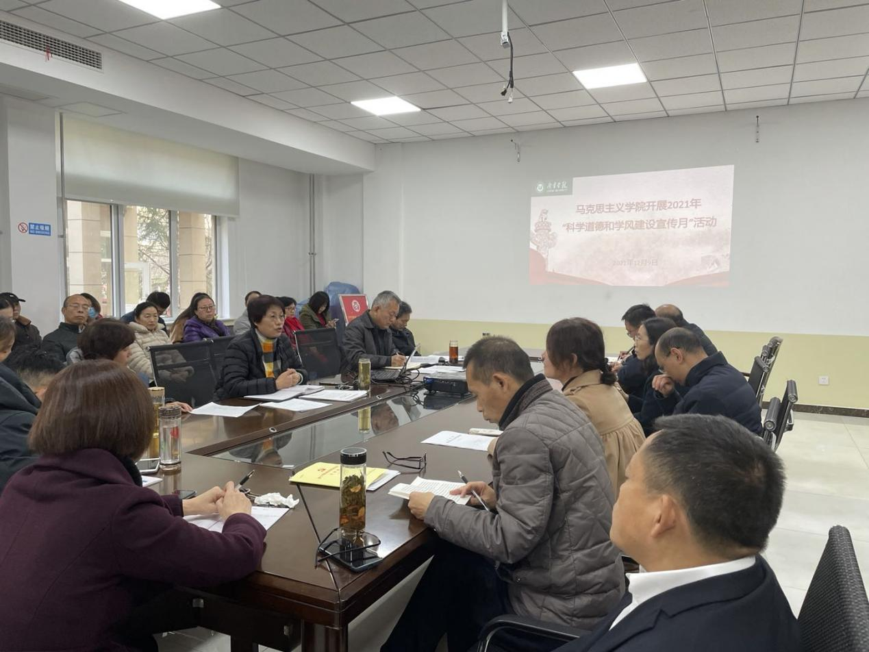 12月9日上午,学院召开全体教师会议,启动2021年“科学道德和学风建设宣传月”活动。会议由院长王玉华主持,全体教职工参加了会议。