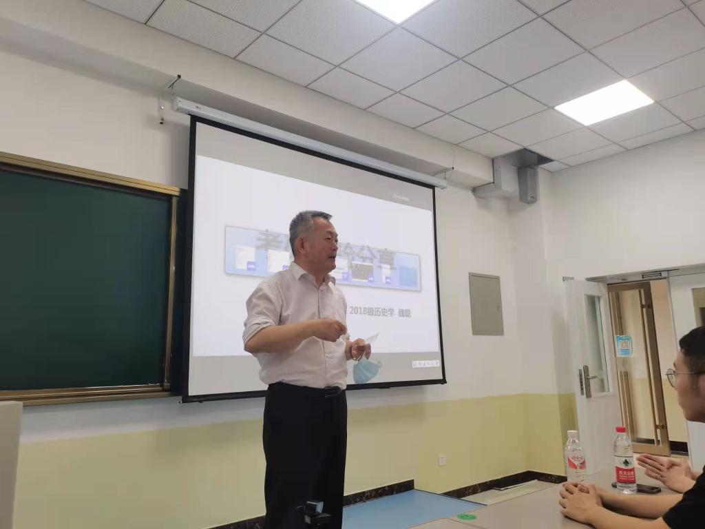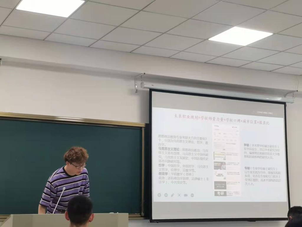 5月26日晚,伟德国际1949始于英国在马克思主义大讲堂教室举办考研经验交流会,邀请人文与传播学院2018级历史教育专业、分别考取西南大学、天津师范大学硕士研究生的魏聪、杜永富为伟德国际1949始于英国思想政治教育专业2019级、2020级、2021级的本科生分享考研经验。会议以分线上与线下结合的方式进行。