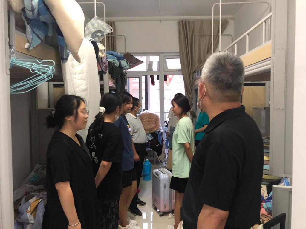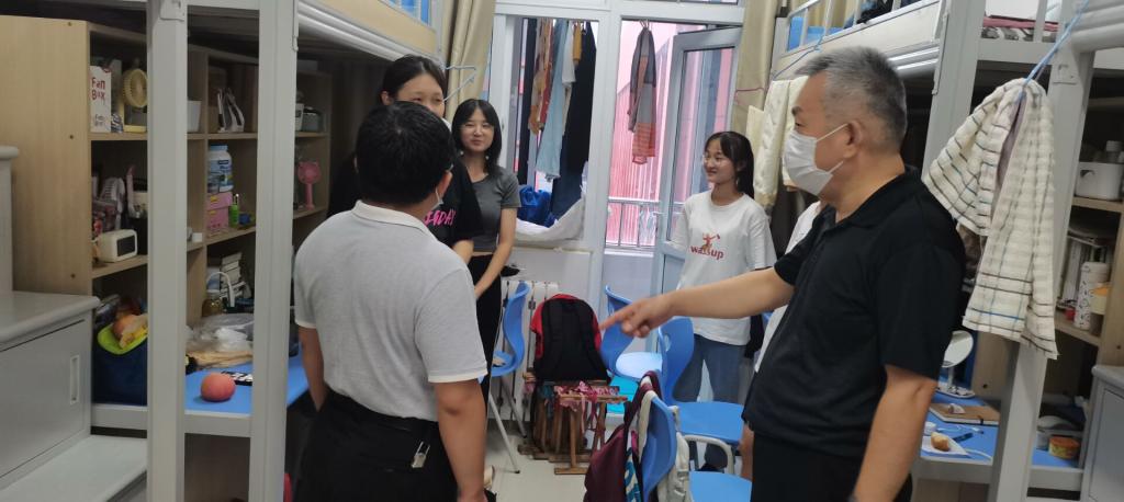 首先,樊海涛、姚海生看望了2019级新调整宿舍的同学,询问她们假期的生活、学习情况,对新调整宿舍的满意情况,同学们脸上洋溢着灿烂的笑容,表示很满意,宿舍环境很好。随后,老师们到部分2020级宿舍看望返校同学们。