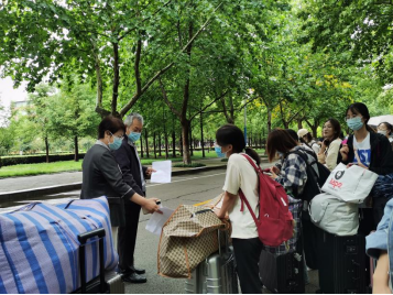 8月29日早晨,樊海涛、王玉华、姚海生为前往济宁各地的支教学生送行。