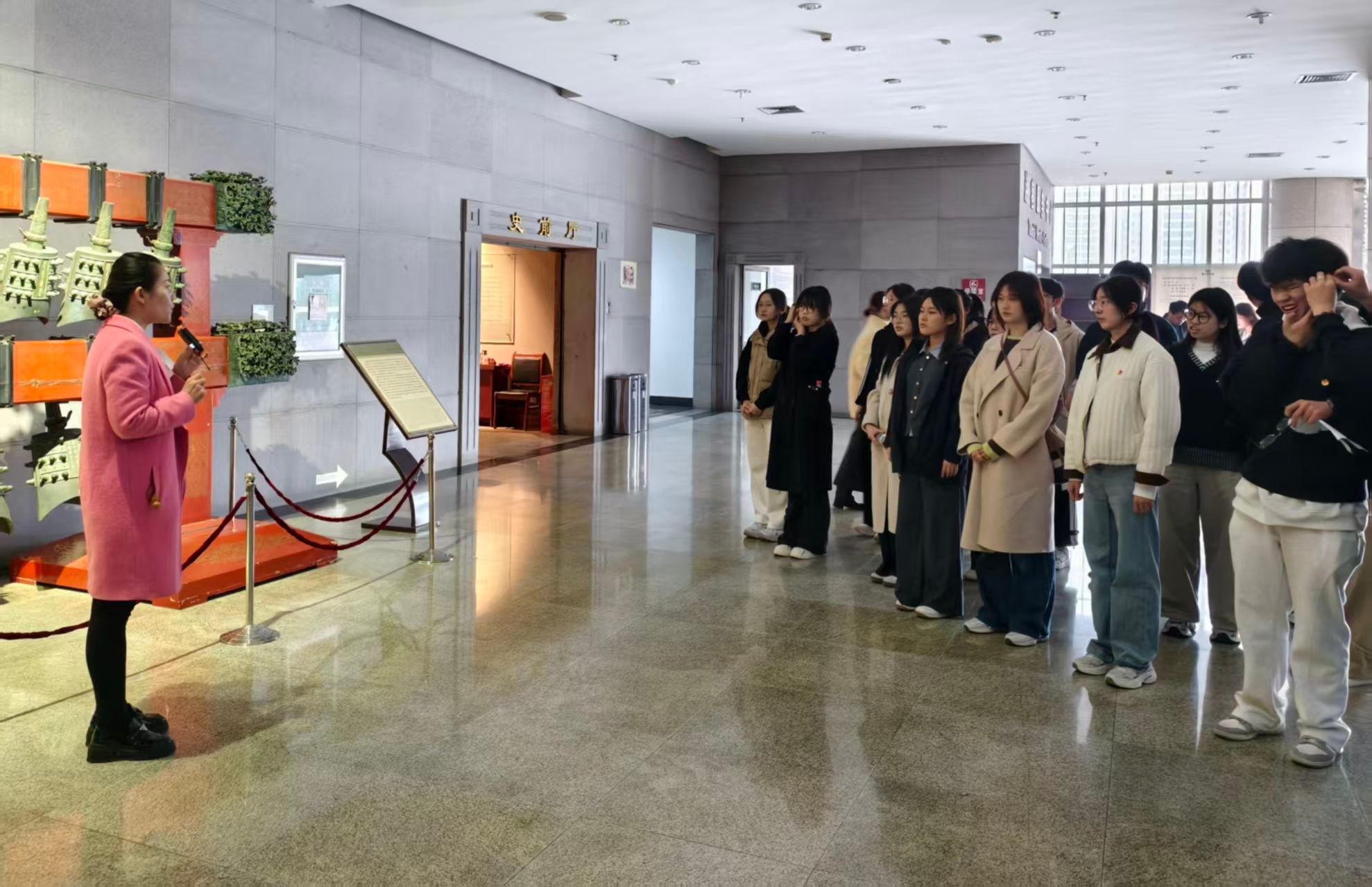 邹城历史博物馆作为承载邹鲁文化的重要载体,馆藏文物系统展现了邹鲁地区“崇文尚礼、崇德向善”的文化脉络。实践教学伊始,师生们在讲解员引导下有序入馆,从“远古溯源”展区的石器、陶器中触摸先民生活印记,在“邹鲁文脉”展区的典籍复刻、场景复原中探寻儒家思想起源,于“民俗风情”展区的传统器物里感受地域文化特色。每一件展品都成为“活教材”,每一段史料都化作“教学案例”,为实践教学奠定深厚文化基底。