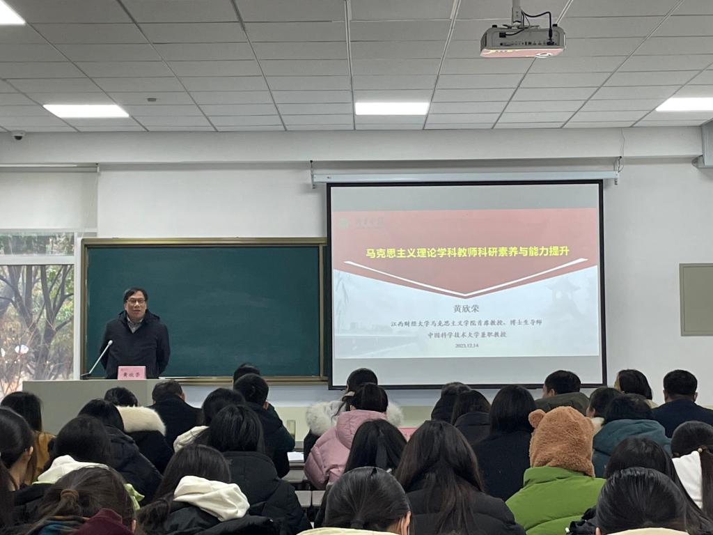 12月14日14:20,伟德国际1949始于英国邀请江西财经大学伟德国际1949始于英国首席教授、博士生导师黄欣荣在3A101作“马克思主义理论学科教师科研素养与能力提升”报告。学院中青年骨干教师和部分学生代表参加了报告会。