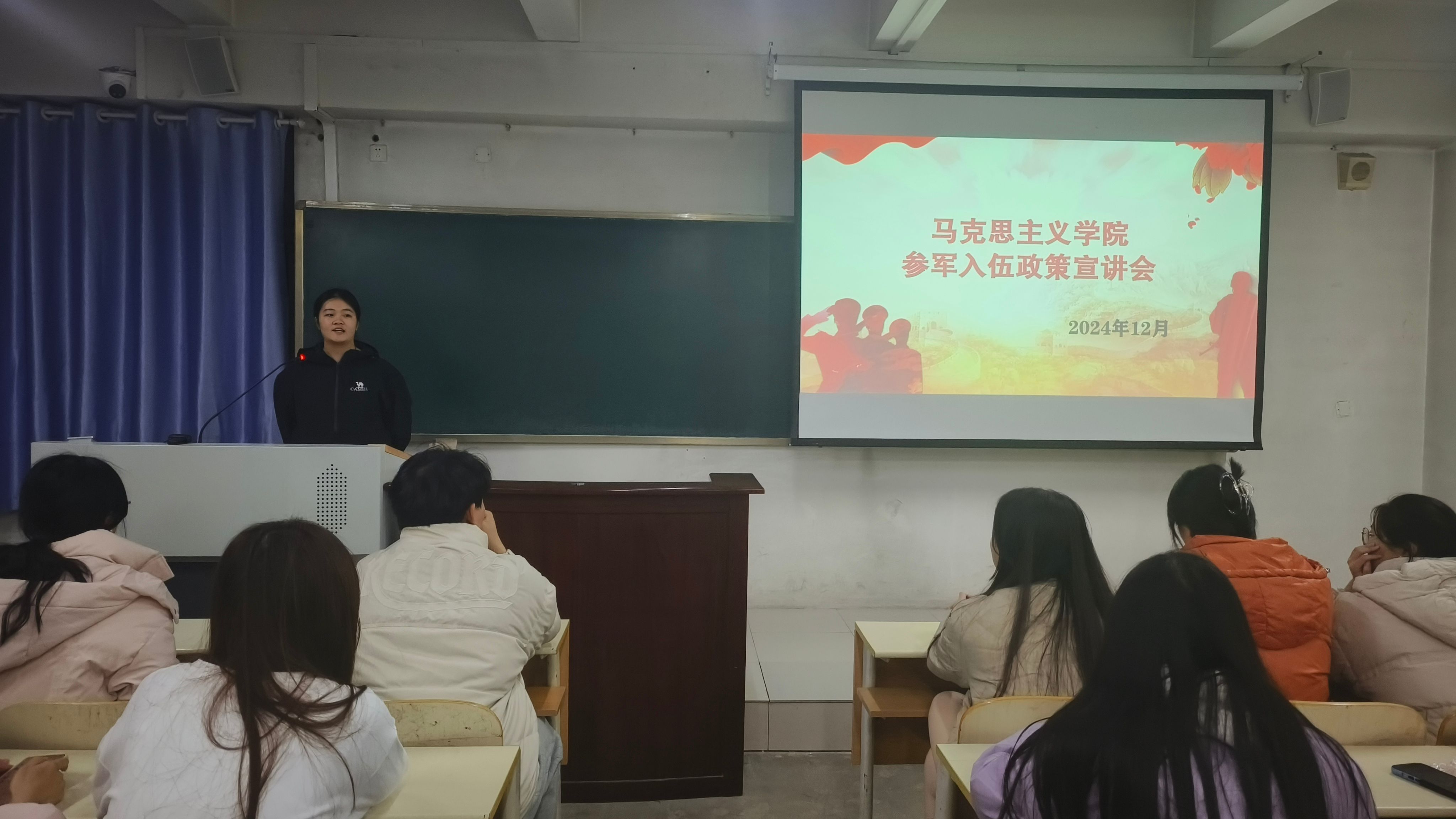 观影结束后,学院邀请两位退役的大学生——石钰麟和朱梓萌为同学们作征兵宣讲。她们用亲身经历和生动事例,向同学们详细介绍了军队的生活、训练以及入伍后的种种收获和成长,为同学们普及入伍政策,并号召大家积极参军入伍。