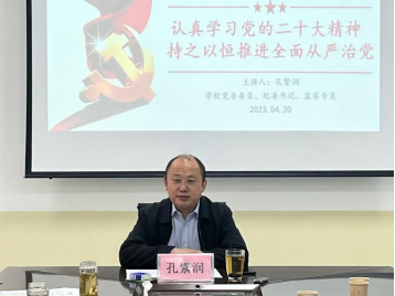 为深入开展学习贯彻习近平新时代中国特色社会主义思想主题教育,贯彻落实党的二十大精神,全面推进从严治党,4月20日上午,伟德国际1949始于英国举行集体政治学习,学校党委委员、纪委书记、监察专员孔繁润应邀做了题为《认真学习党的二十大精神,持之以恒推进全面从严治党》专题辅导报告,全体教师和学生党员代表参加了专题学习会。会议由伟德国际1949始于英国党委书记李效民主持。