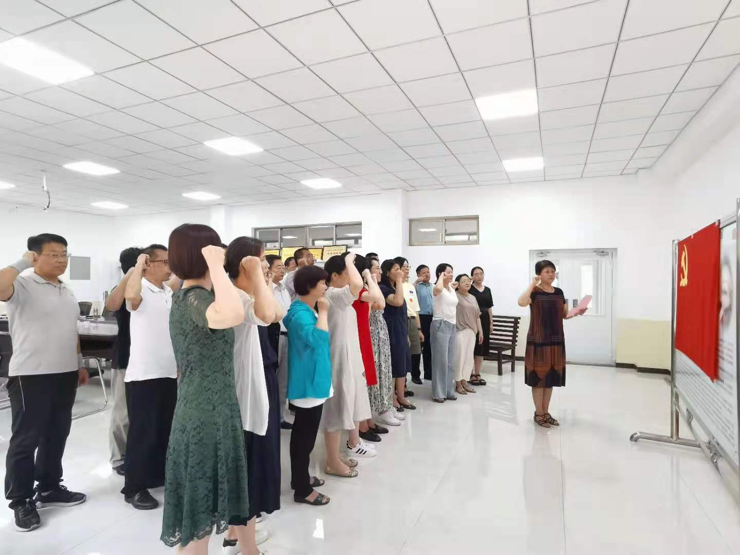 理论学习结束后,全体党员在会议室内面向党旗举起右拳,以集体宣誓的方式重温了入党誓词,使每名党员都回忆起了申请入党时的思想激情和奋斗追求,回顾了入党宣誓时的庄严承诺和为民服务的初心。