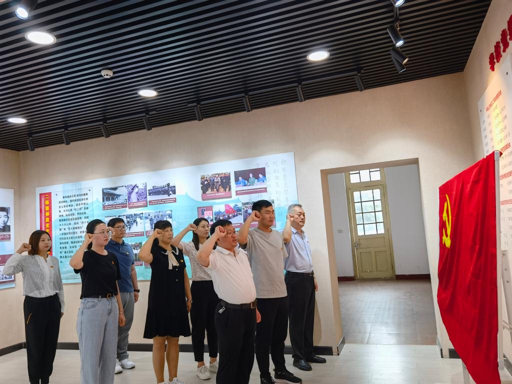 全体党员在展览馆内面向党旗举起右拳,以集体宣誓的方式重温了入党誓词,使每名党员都回忆起了申请入党时的思想激情和奋斗追求,回顾了入党宣誓时的庄严承诺和坚定决心。