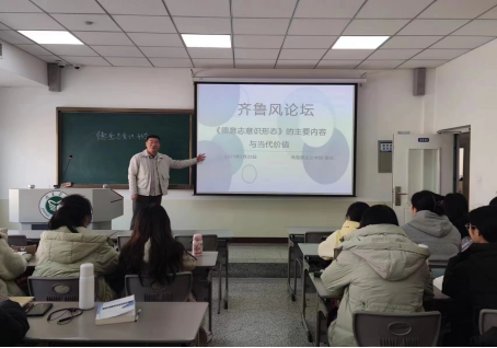 2月23日上午,虚拟教研室“齐鲁风”论坛第1期在2号楼A313顺利举行,本次论坛由杨光老师主讲,2021级思想政治教育本科专业学生参加。